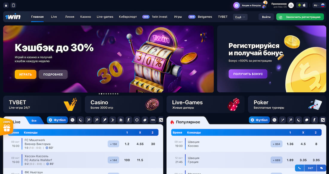 На официальном сайте букмекерской конторы 1вин пользователи могут делать ставки и играть в казино. Доступ в оба сервиса осуществляется с одного аккаунта. Casino предоставляет клиентам возможность играть бесплатно и на деньги. В последнем случае регистрация является обязательным условием.